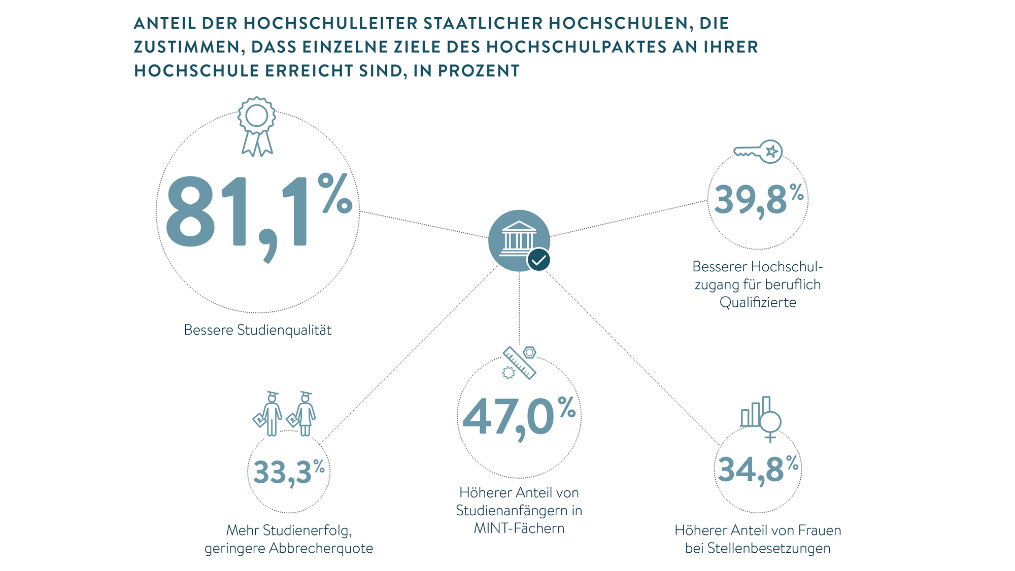 zwar, dass der Hochschulpakt die Studienqualität an ihren Hochschulen verbessert hat. Gleichzeitig sieht nur eine Minderheit bereits Erfolge bei den weiteren Zielen.
